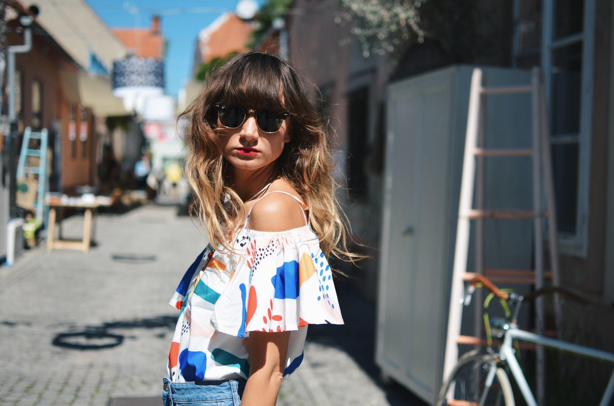 U sklopu ovogodišnjeg Špancirfesta u Uskoj ulici imati prilike vidjeti neke od najkreativnijih mladih dizajnera iz područja mode i produkt dizajna koji su putem javnog natječaja izabrani da deset dana izlažu svoje radove, vode radionice i prolaznicima pokazuju kako nastaju njihove kreacije… Danas sam uskočila u šarenu bluzu koja je stvorena za šarenu ulicu koja pršti kreativnošću, a upotpunila sam je 3/4 trapericama i omiljenim crvenim cipelama.