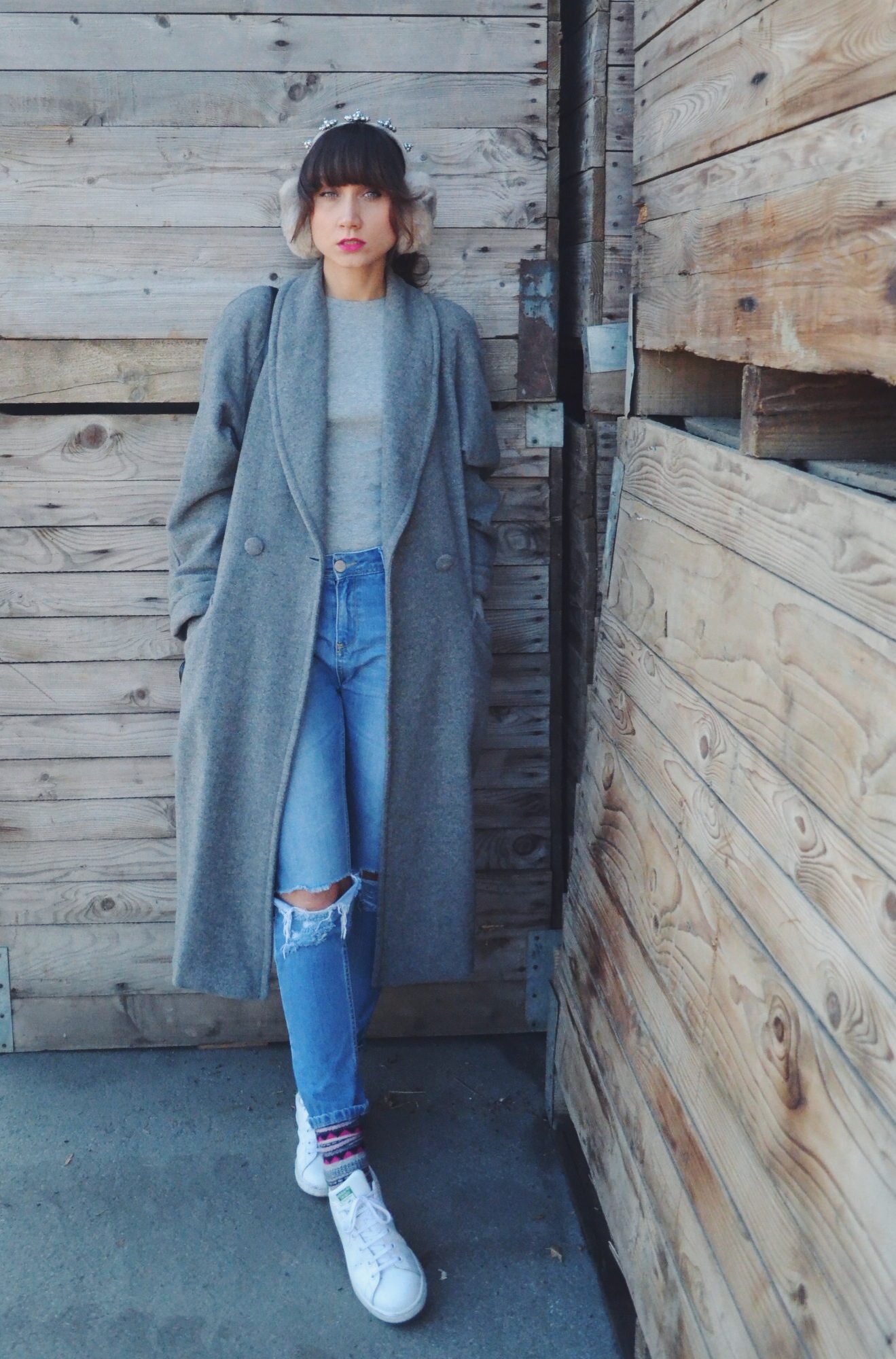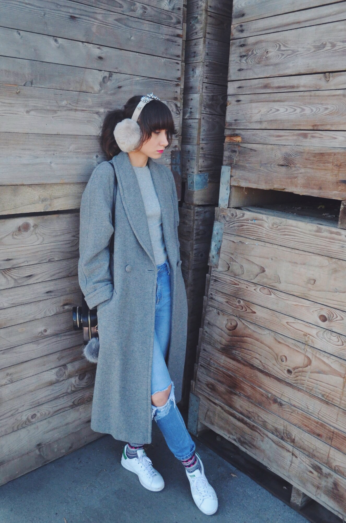 COAT: Second Hand, SHIRT: Primark, JEANS: Asos, BAG: Carpisa, SNEAKERS: Adidas Originals, SOCKS: H&M, EARMUFFS: Robert Sever, WATCH: Urban Watch, BRACELET: La Petite Mignon