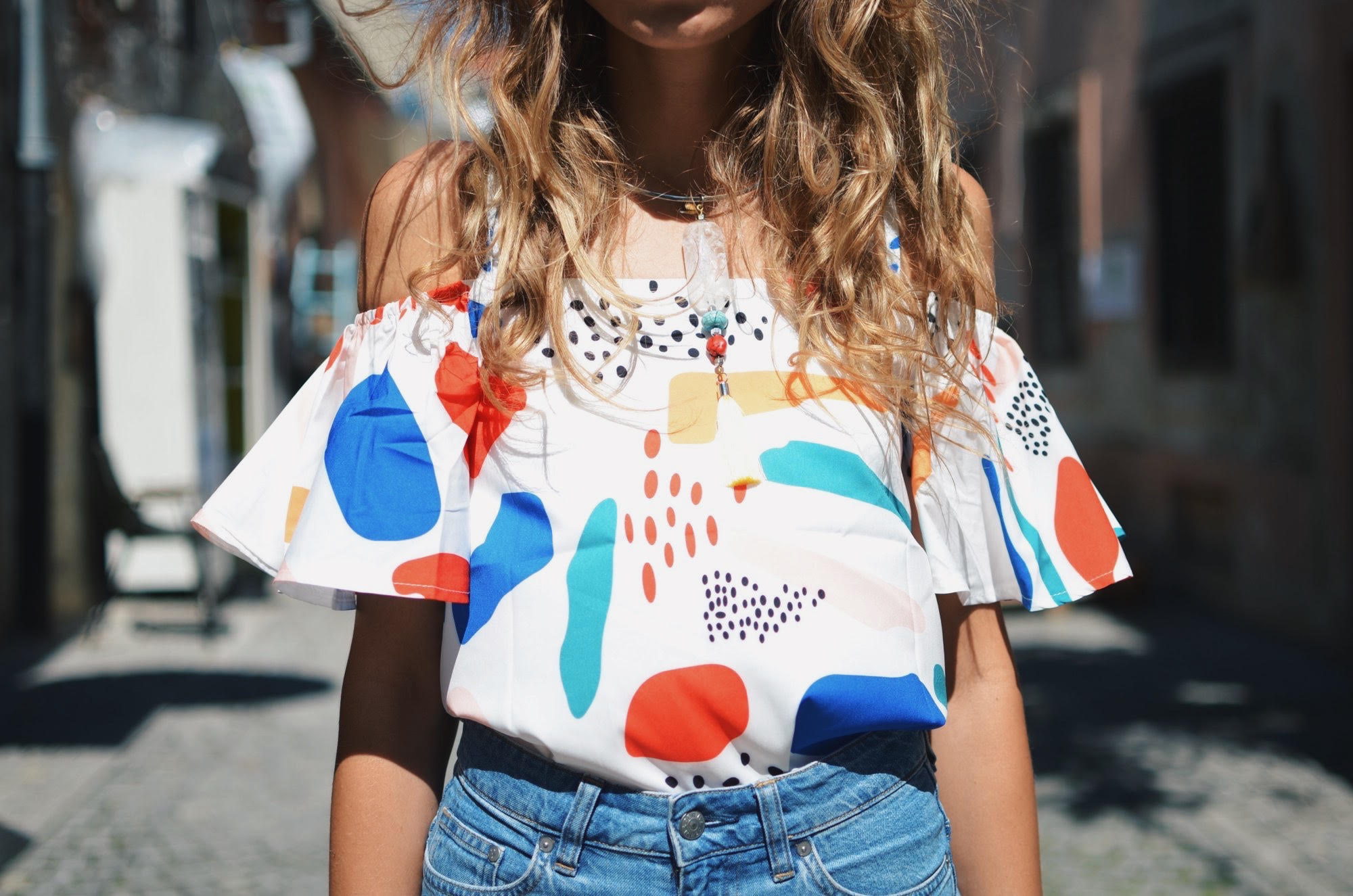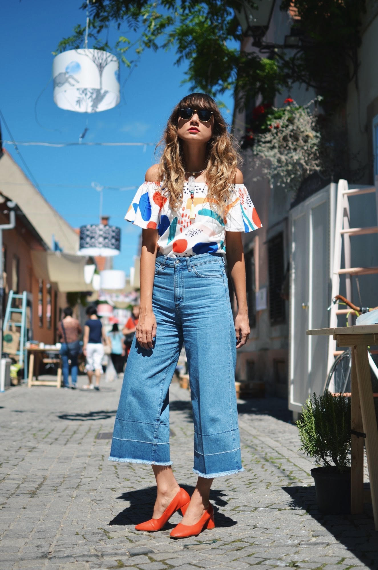 U sklopu ovogodišnjeg Špancirfesta u Uskoj ulici imati prilike vidjeti neke od najkreativnijih mladih dizajnera iz područja mode i produkt dizajna koji su putem javnog natječaja izabrani da deset dana izlažu svoje radove, vode radionice i prolaznicima pokazuju kako nastaju njihove kreacije… Danas sam uskočila u šarenu bluzu koja je stvorena za šarenu ulicu koja pršti kreativnošću, a upotpunila sam je 3/4 trapericama i omiljenim crvenim cipelama.