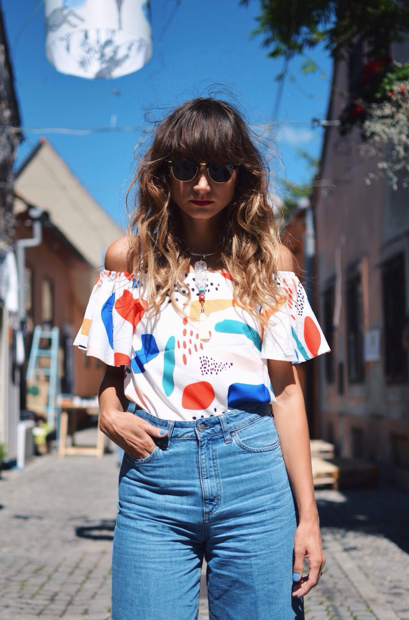 BLOUSE: Romwe, JEANS: H&M, SHOES: Mango, NECKLACE: Emma&Nala, SUNGLASSES: Ray Ban