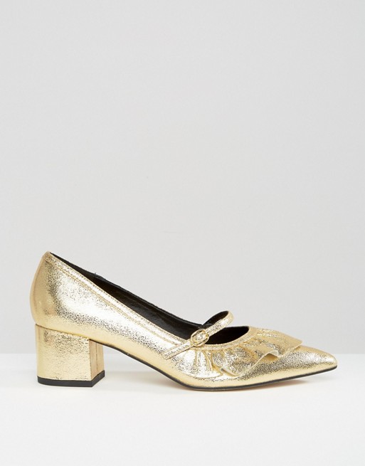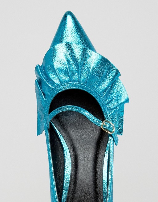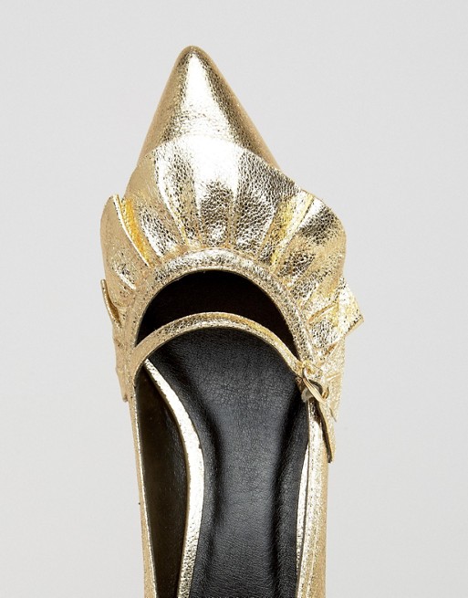 I found this lovely metallic shoes on Asos and fell in love with them instantly. I love the metallic finish, the adorable ruffle trim and the optimal 5 cm heels size. Who could say no to them?
