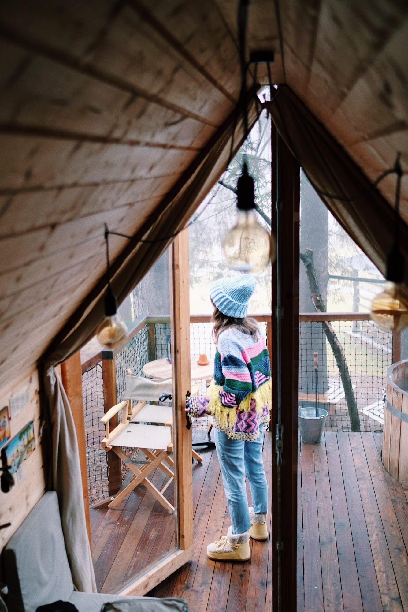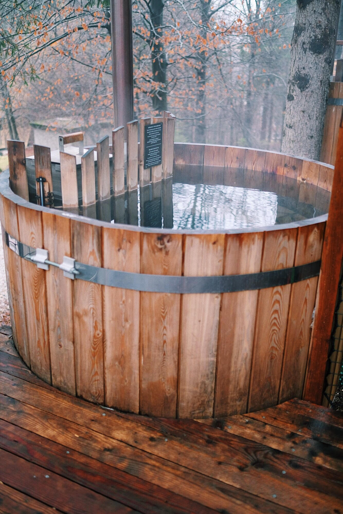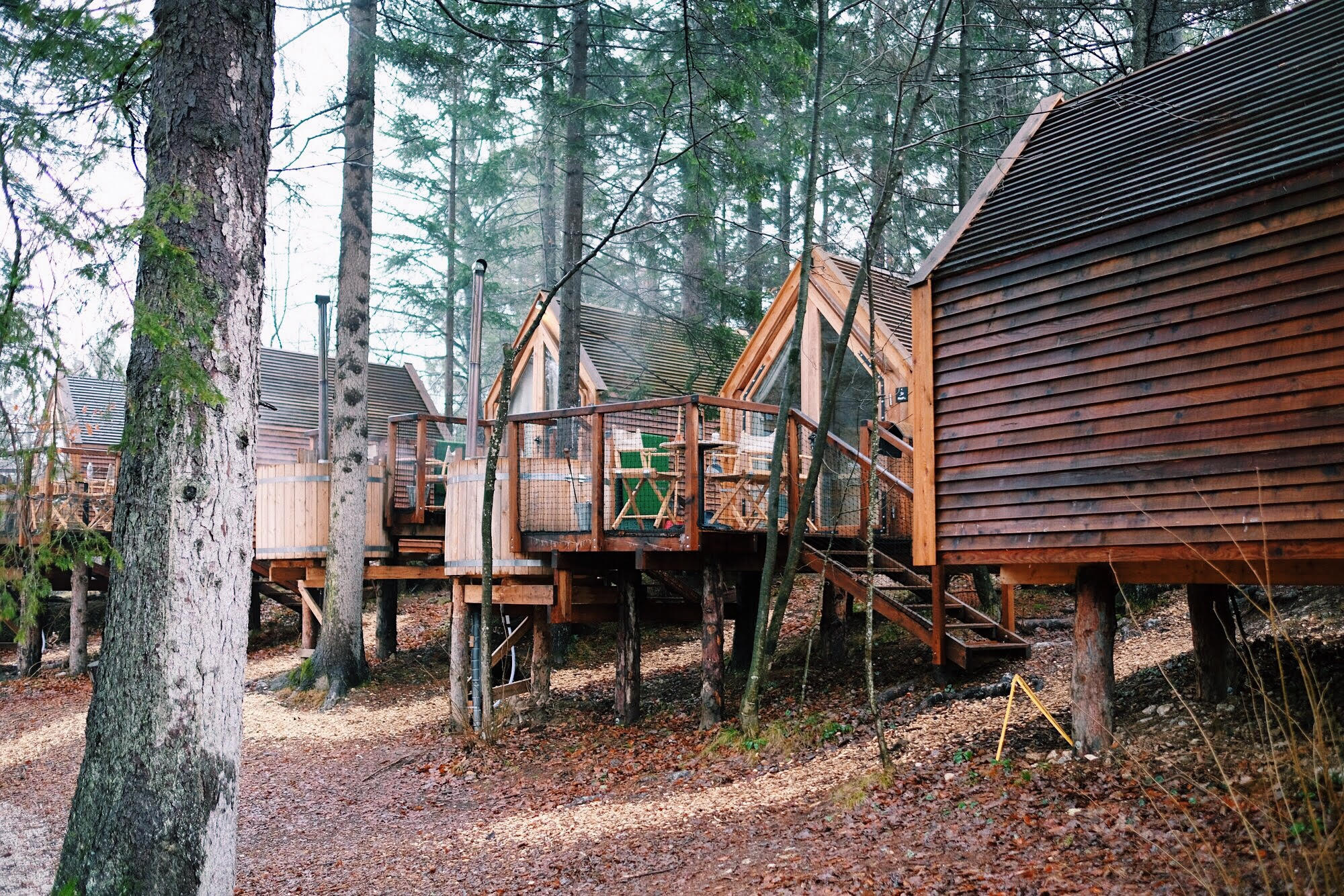 Slovenija je puna divnih glamping resorta, pogotovo u okolici Bleda, a Glamping Ribno koji se nalazi samo 3 kilometra od centra Bleda bio je naš izbor. Zašto? Jedan od razloga bila je svakako i pristupačna cijena (95 eura za noćenje s doručkom) i Bookingov link zahvaljujući kojem ću na račun dobiti vraćeno 200 kuna. Malo sam se bojala da će nam biti hladno pa sam u torbu spakirala najtoplije veste, deke i buce, no kućica je grijana i ima odličnu izolaciju tako da sam većinu ‘tople’ robe ostavila u autu. Najveći plus je svakako grijana parna kupelj koju sami morate ložiti. U utorak je cijelo popodne padala kiša pa smo dan i večer proveli upravo u njoj – mislim da vam ne moram dodatno dočaravati naše oduševljenje. Kućice su male, uredne i jednostavno neodoljive, u njima se nalaze dva velika kreveta, stol i dvije stolice, televizor, velika terasa i ranije spomenuta parna kupelj. Imate vlastitu kupaonicu koja je smještena par koraka od vas, uz sam Hotel Ribno. Iako sam bila malo razočarana što smo dobili kućicu s pogledom na hotel, razočaranje je brzo prošlo jer od krošnji drveća zapravo vidite samo obrise hotela i u čaroliji prirode zaboravite na tu sitnicu… Možda bi jedini minus cijele priče bio nedostatak privatnosti, jer su kućice jako blizu jedna drugoj.